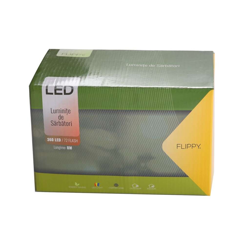 Prezentare Instalatie de Craciun Premium Flippy® Tip Perdea cu Flash 8 m x 1 m 360 LED-uri Mari: