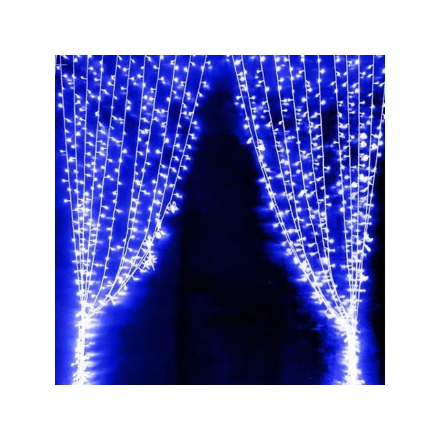 Instalatie de Craciun Tip Perdea Fir Transparent 3 X 3 m 300 Leduri Albastru 2782B este interconectabila, lucru ce permite conectarea mai multor instalatii in limita a 2.000 de LED-uri.
