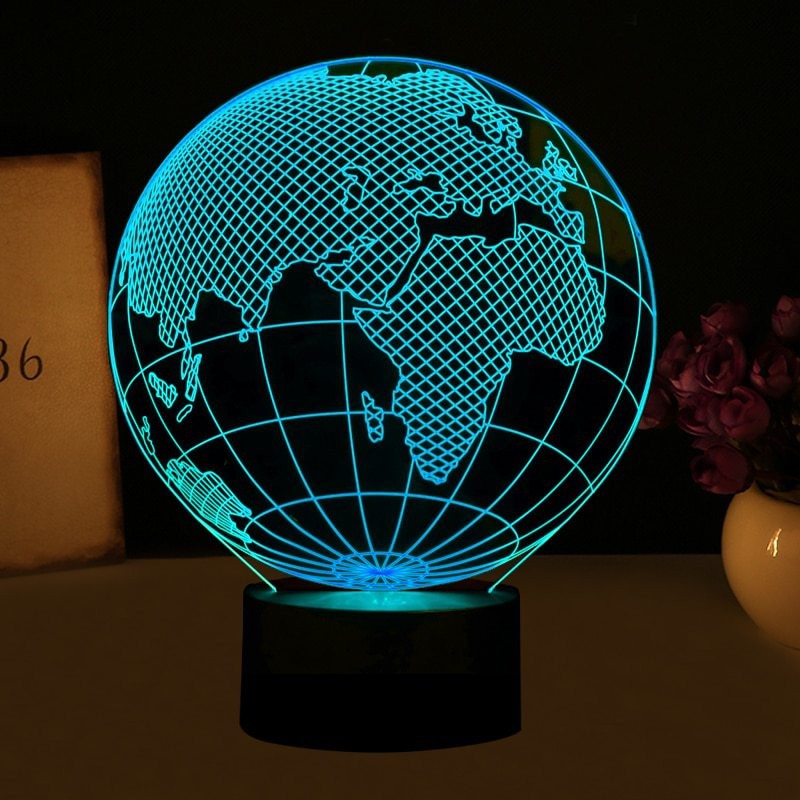 Lampa de Veghe cu Telecomanda si Baterii/USB 3D Model Glob Pamantesc Multicolor