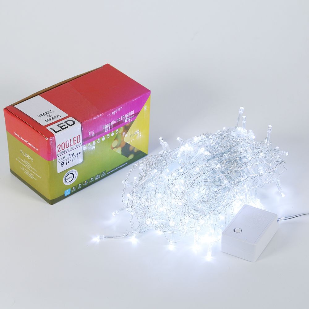1 x Instalatie de Craciun, Flippy®, Tip Franjuri, 7 m, 200 LED-uri, Interconectabila, Alb Rece