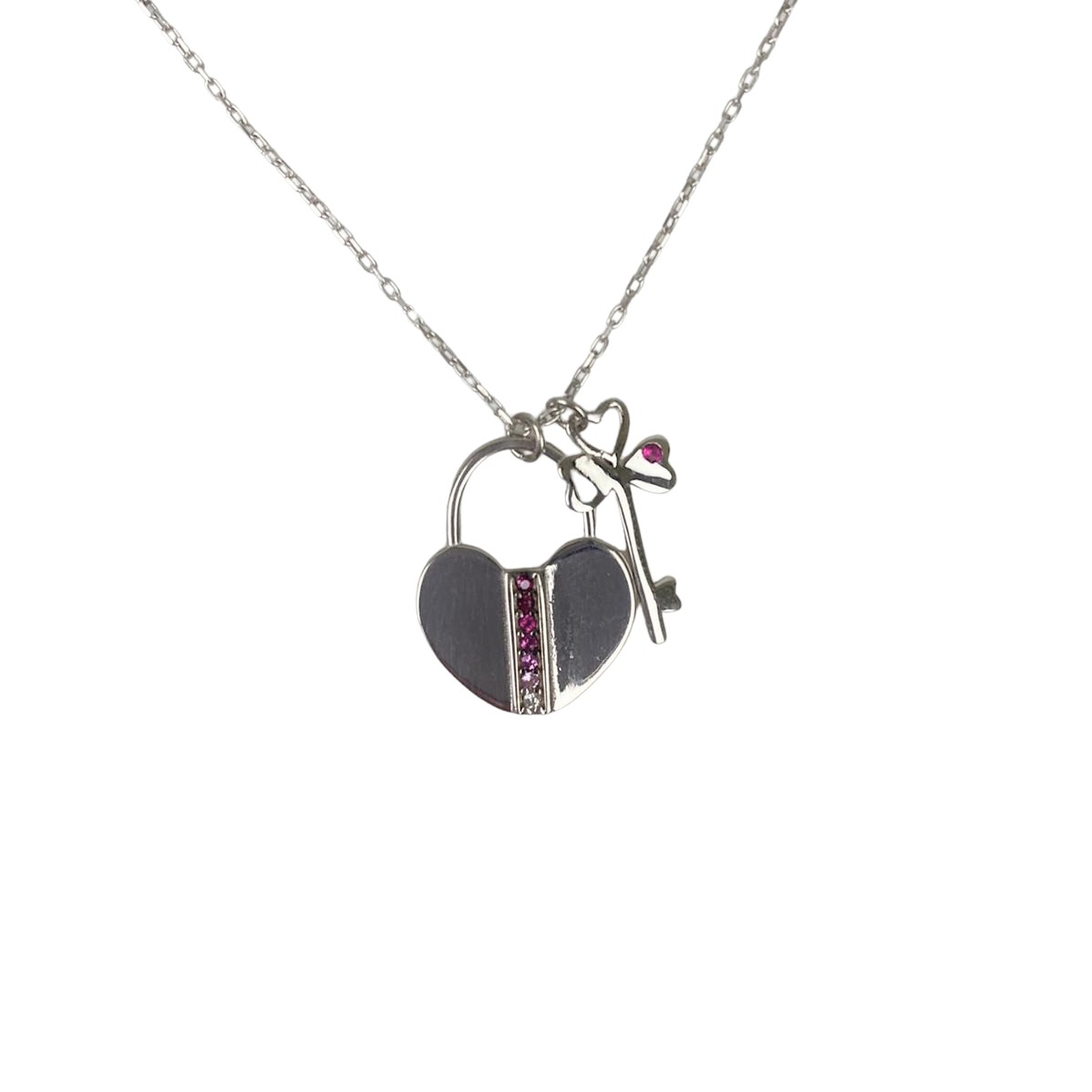 Colier din Argint 925, Lacat cu Zirconii Roz 42 cm