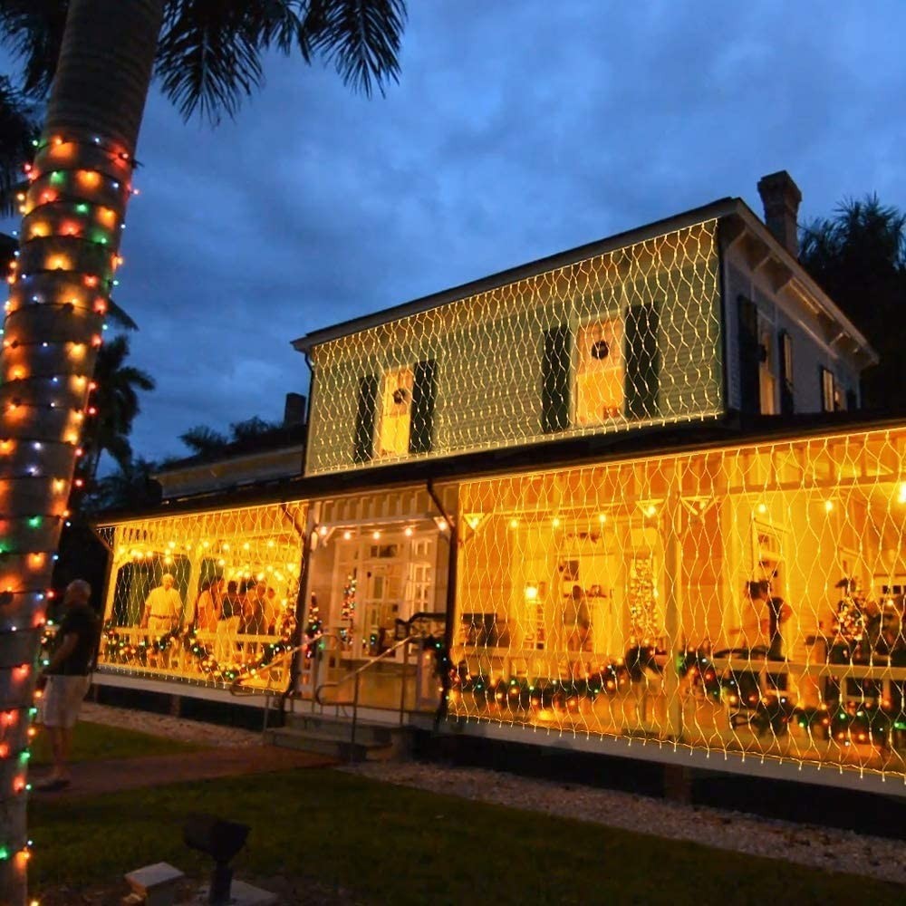 Instalatie Craciun, Tip Plasa, 1 m x 3 m, 160 LED-uri, Alb cald, 8 jocuri de lumini, Transformator, Interconectabila, Prelungitor 5 m inclus, Fir transparent, Flippy