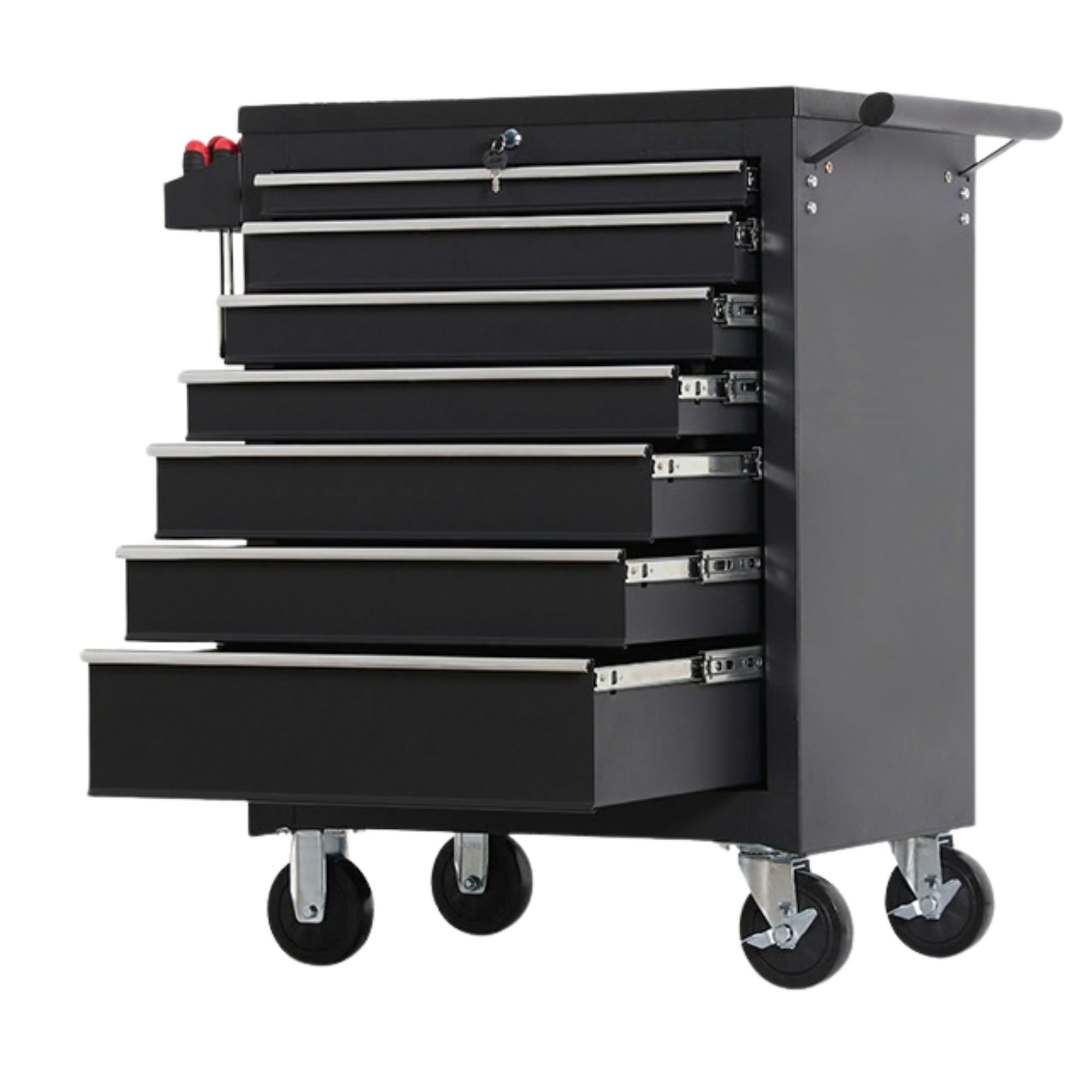 7 sertare spatioase – separi usor chei, surubelnite, clesti, capete tubulare, consumabile si accesorii.