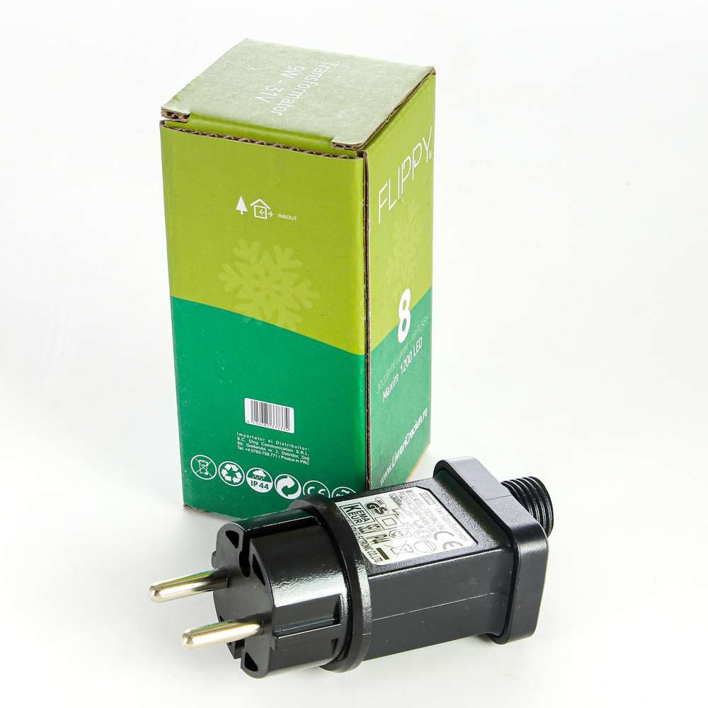 Transformatorul cu stecher este fabricat dintr-un plastic rezistent la umezeala/ inghet confrom standardului IP44. Sursa poate fi conectata la priza. Tensiunea de intrare recomandata este de 220V, iar tensiunea de iesire este de 31 V. Putere la iesire este de 9 W - 50 Hz cu un amperaj de 0.2 A. Datorita acestui transformator pericolul de eletrocutare este extrem de redus, instalatia folosind un voltaj mic. Cablurile, ledurile si instalatia prezinta risc minim pentru siguranta copiilor. Atentie la utilizarea prizei electrice.