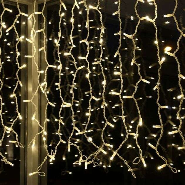 Instalatie de Craciun Flippy® Tip Perdea, Flash, cu transformator, 14m x 1m, 840 LED-uri, Interconectabila, Fir Transparent, Alb Cald