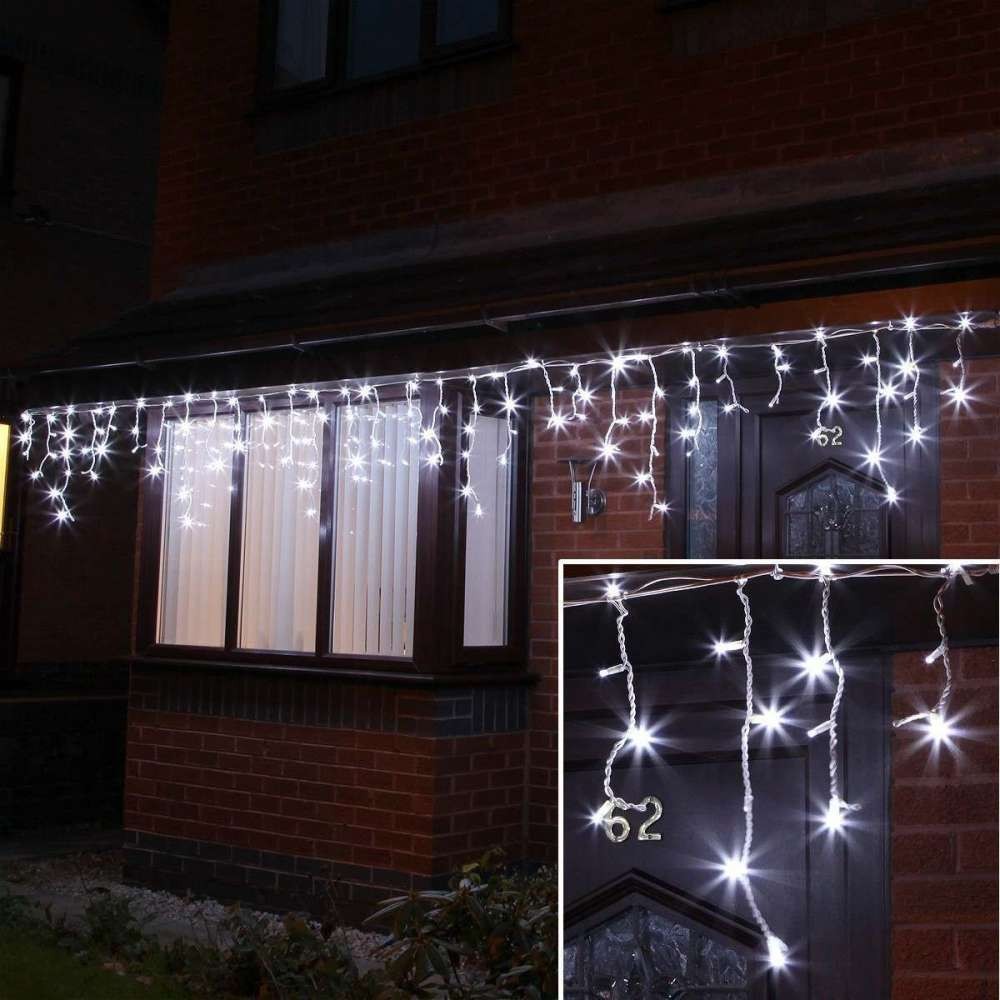 Instalatie de Craciun Premium Flippy® Tip Franjuri, Flash, cu transformator, 50 m, 1200 LED-uri, Interconectabila, Fir Alb, Alb Rece