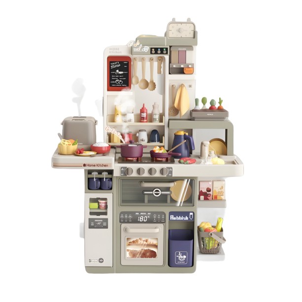 Bucatarie pentru Copii Spray Kitchen, Flippy, cu Lumini si Sunete Realiste, Aburi, Robinet cu Flux de Apa, 88 Piese, 93 x 69 x 27 cm, 4 Ani+, Gri/Verde