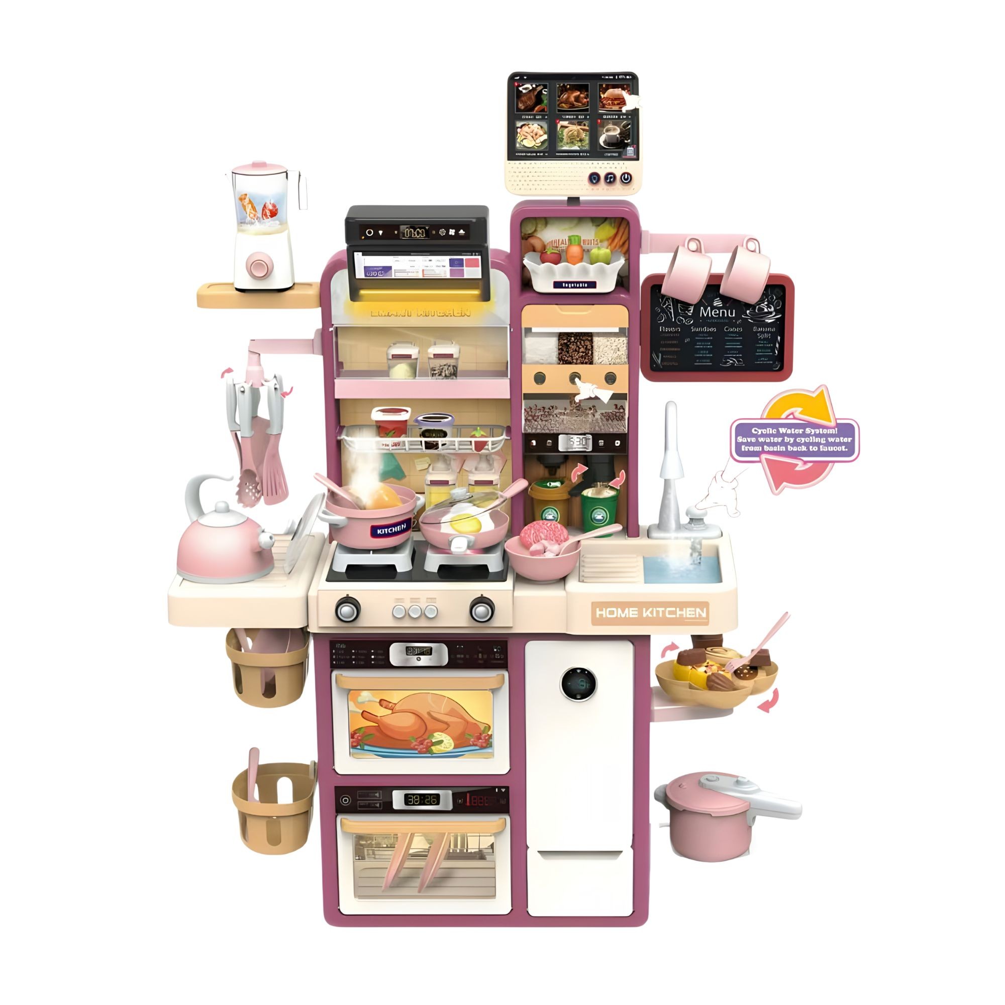 Bucatarie Multifunctionala pentru Copii, Flippy, Jucarie Interactiva, cu Lumini, Sunete, Abur si Apa Reala, Robinet cu Circuit de Apa, 42 Accesorii Incluse, 46 x 22 x 63 cm, Bej/Roz