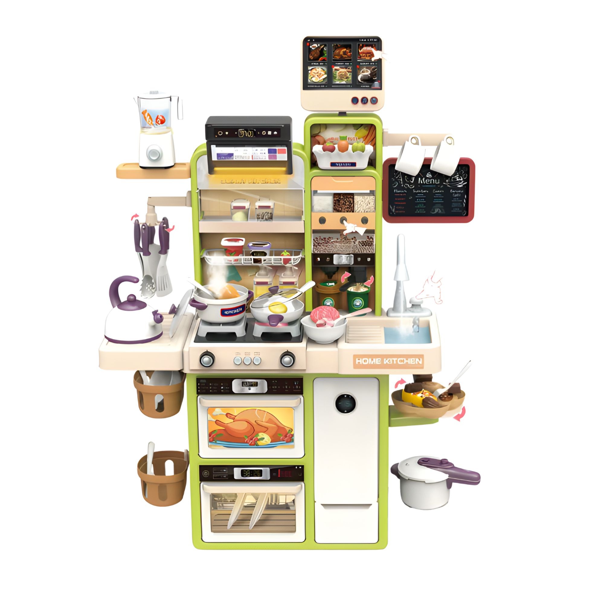 Bucatarie pentru Copii, Flippy, Jucarie Montessori, din Plastic Rezistent, Set de Joaca Educativ cu Electrocasnice, Ustensile, Alimente, Accesorii pentru Gatit, 68 x 23 x 93 cm, Alb/Verde