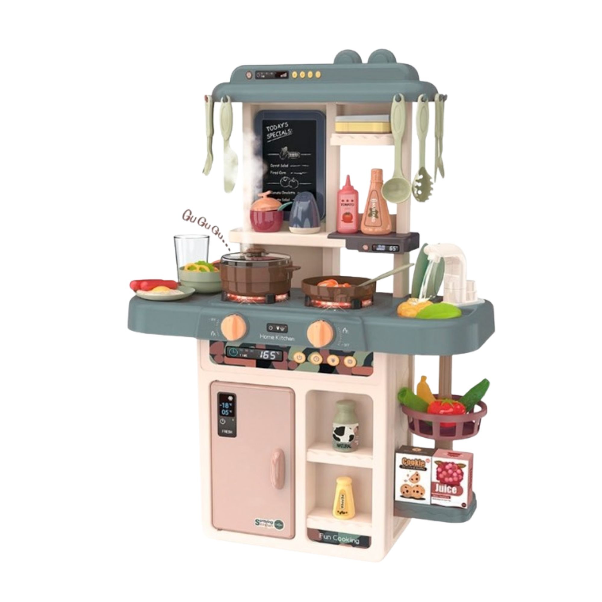 Bucatarie Multifunctionala pentru Copii, Flippy, Jucarie Interactiva, cu Lumini, Sunete, Abur si Apa Reala, Robinet cu Circuit de Apa, 42 Accesorii Incluse, 46 x 22 x 63 cm, Bej/Gri Inchis