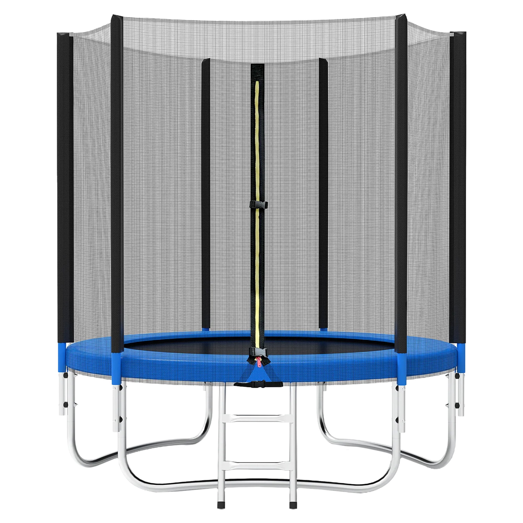 Trambulina pentru Copii, Flippy, Gradina si Exterior, Plasa de Protectie, Scara de Acces, Susutinere din Otel Galvanizat, Capacitate 4-5 Persoane, Pana la 250 kg, 2.44 x 2.6 m, Albastru/Negru